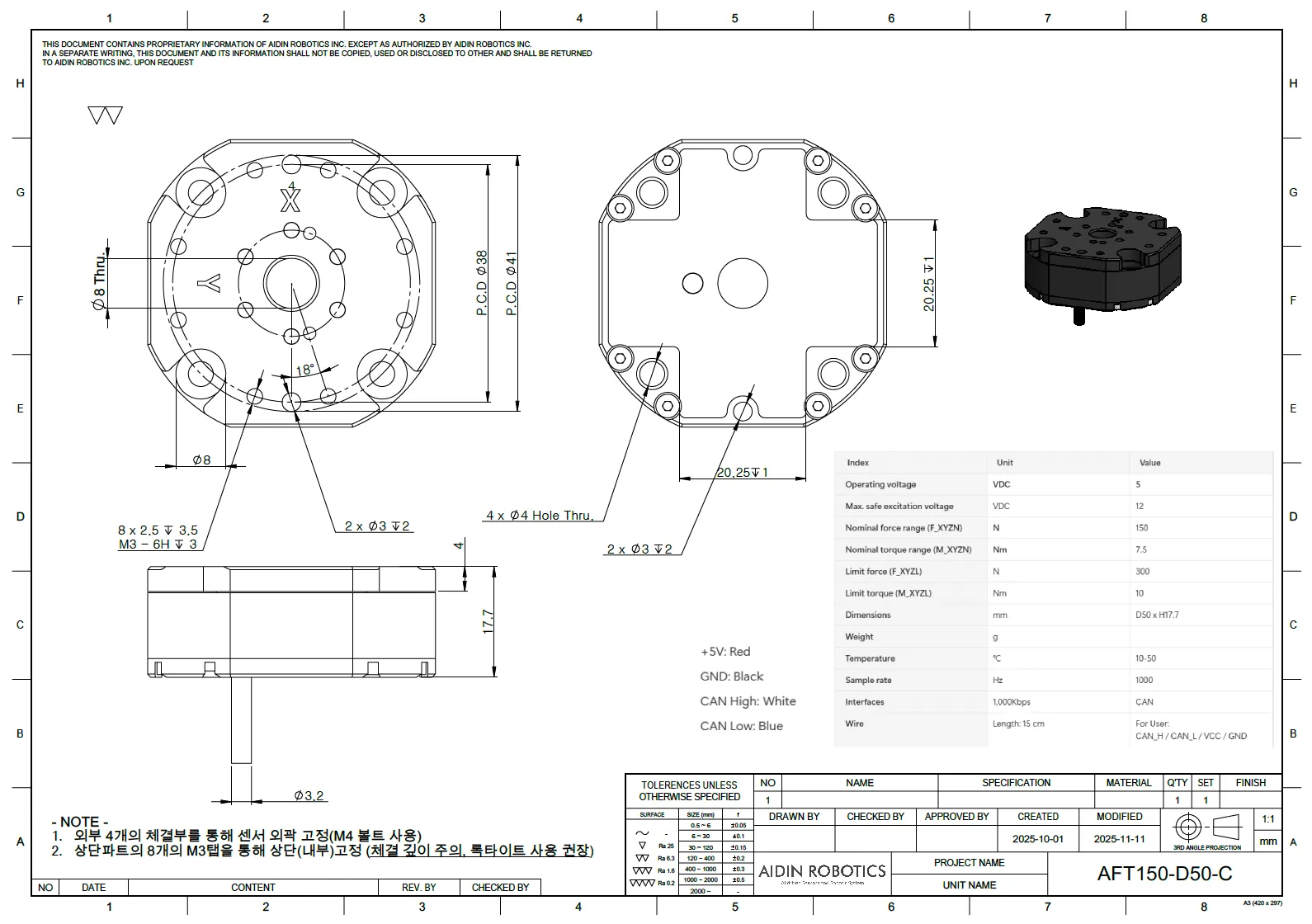 1.1 스마트 6축 힘/토크 센서, AFT150-D50