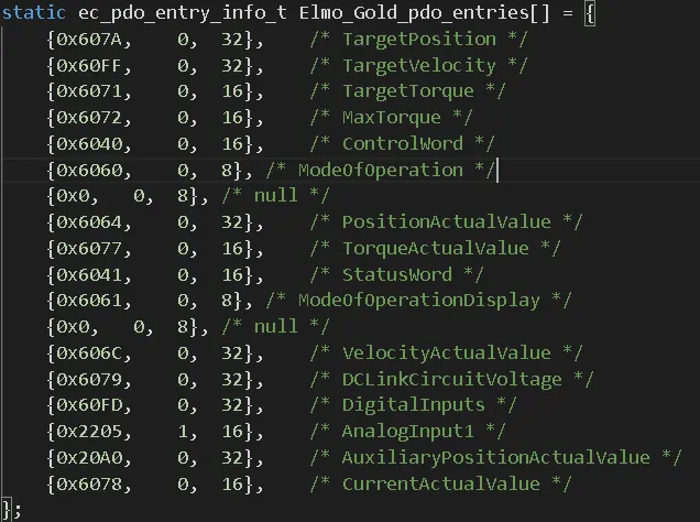 → {2, EC_DIR_OUTPUT, 2, Elmo_Gold_pdos + 0, EC_WD_ENABLE},