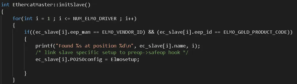 Elmo_EtherCAT.cpp에서 EthercatMaster::initSlave() 수정