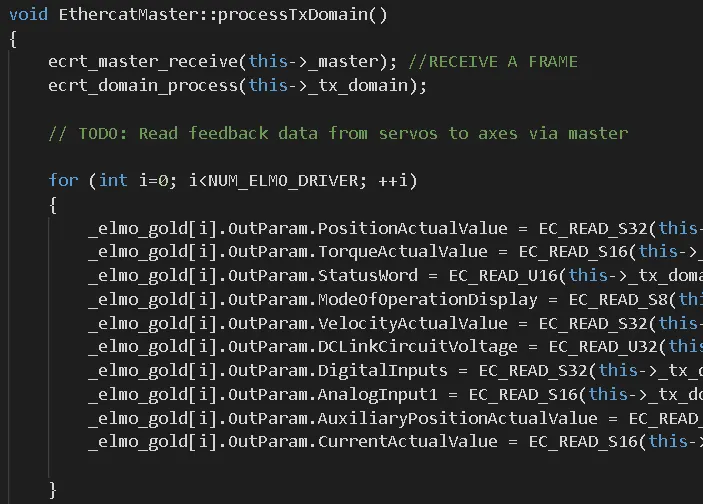 ex) Master→Elmo→Anybus 순일 경우 4.1.2의 for문 순서 또한 Elmo, Anybus 순으로 작성