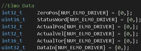 다른 종류의 장비를 추가할 경우, 4.1.1 ~ 4.1.3을 그대로 수행하되, Elmo와 Anybus struct가 나뉘어 있는 것 처럼 추가로 struct를 추가하여 그곳에 넣어주어야 합니다.