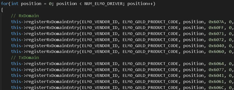 Elmo_EtherCAT.h에서 Vendor ID, Product Code 추가