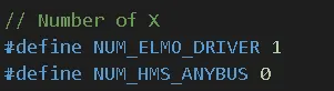 include/Elmo_EtherCAT.h 파일에서 Elmo driver의 경우 NUM_ELMO_DRIVER, Anybus의 경우 NUM_HMS_ANYBUS를 수정하면 됩니다.
