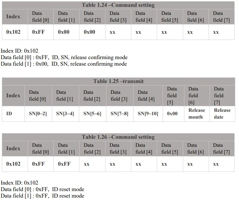 S/N : SSAE22BA045 버전 이전은 초기화시 센서의 ID가 0으로 설정될수 있습니다 Table 1.25을 참고하시어, 설정된 센서 ID를 확인 부탁드립니다