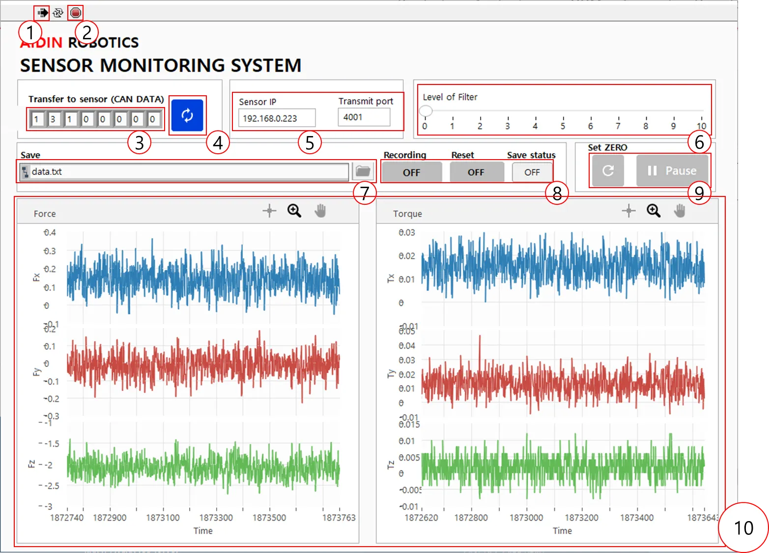 센서 출력데이터의 최초 10분간은 데이터의 흐름 현상이 발생할수 있습니다.