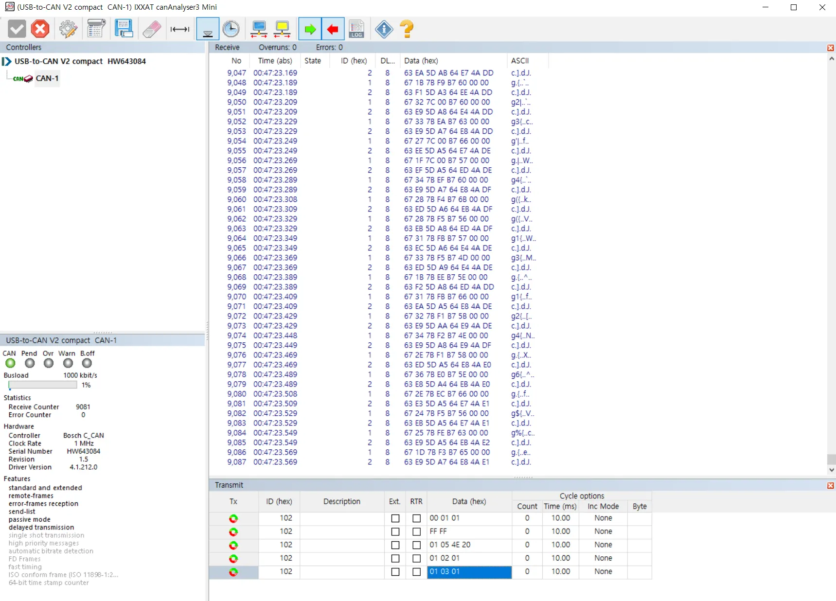 USB-to-CAN V2 (ixxat.com), 메뉴얼에서 사용한 버전: 1.01.0281.11001