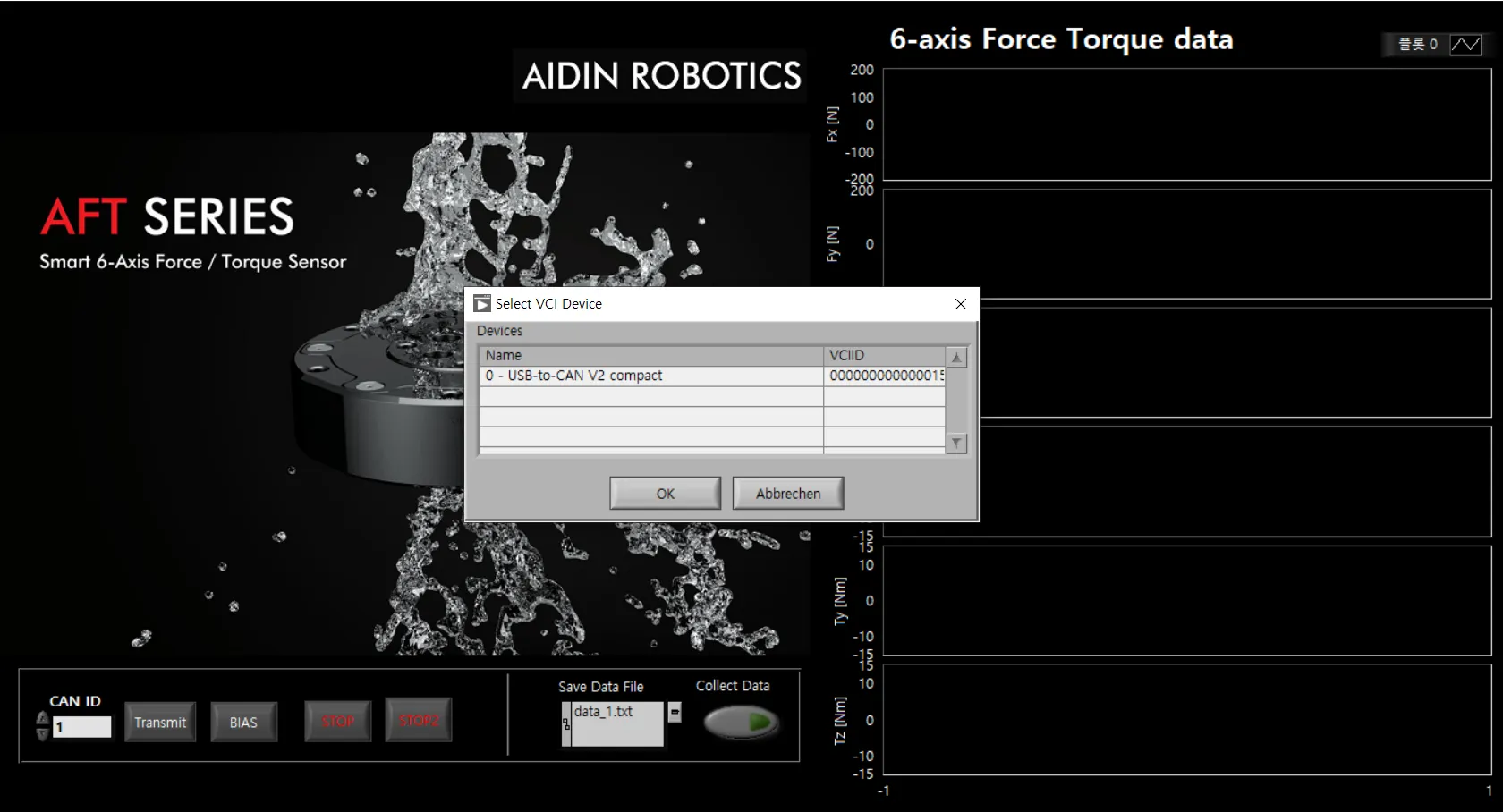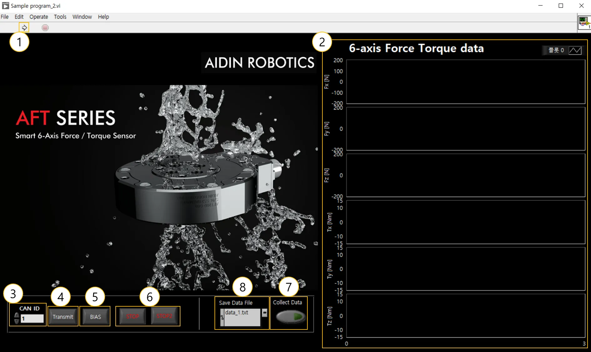 센서 연결 후 AFT SERIES SAMPLE.exe 실행