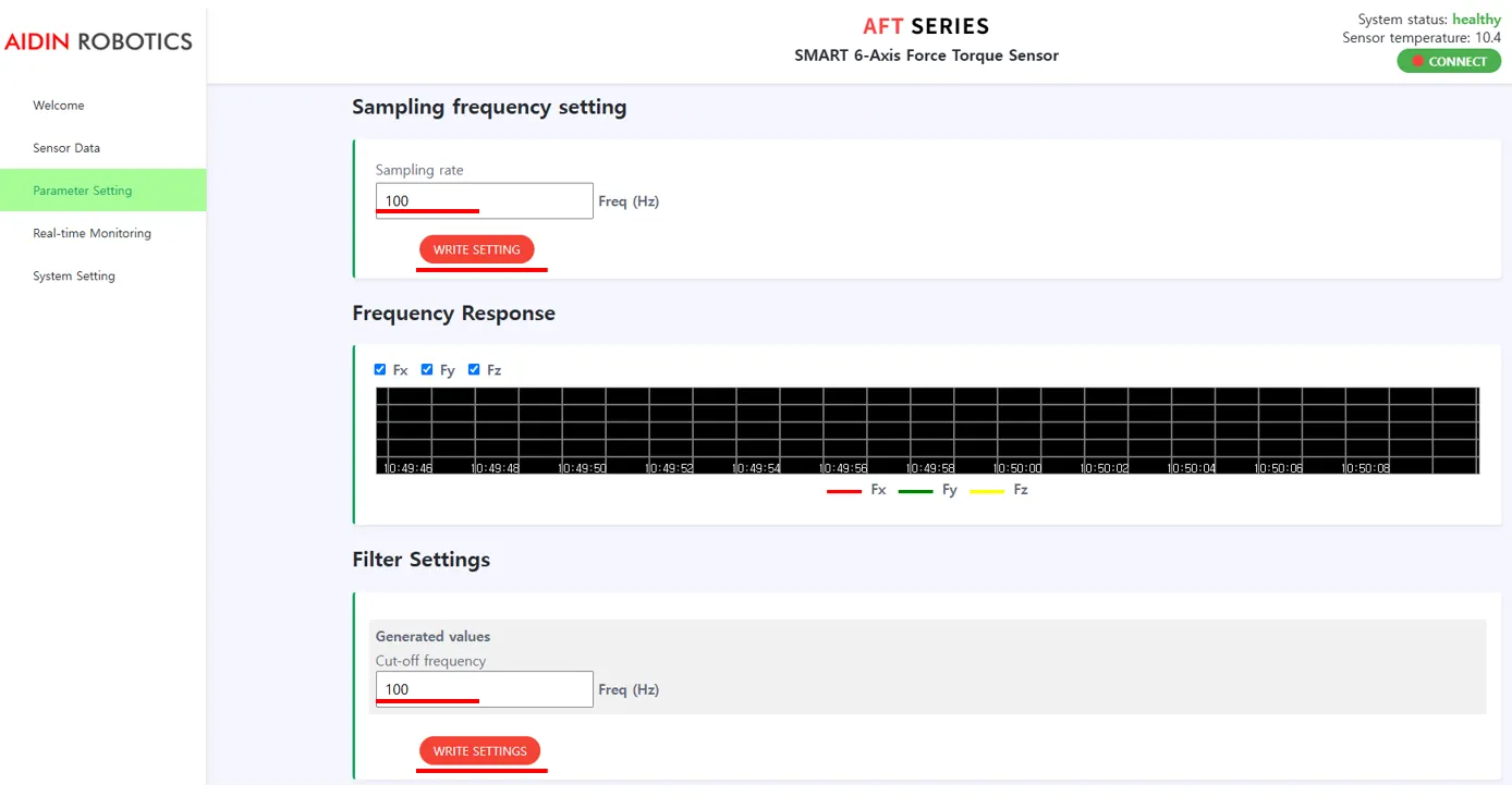 On the left side of the page, there is a menu bar that link to change the valuables of AFT200-D80-EN sensor. Click on the “System Setting” button.