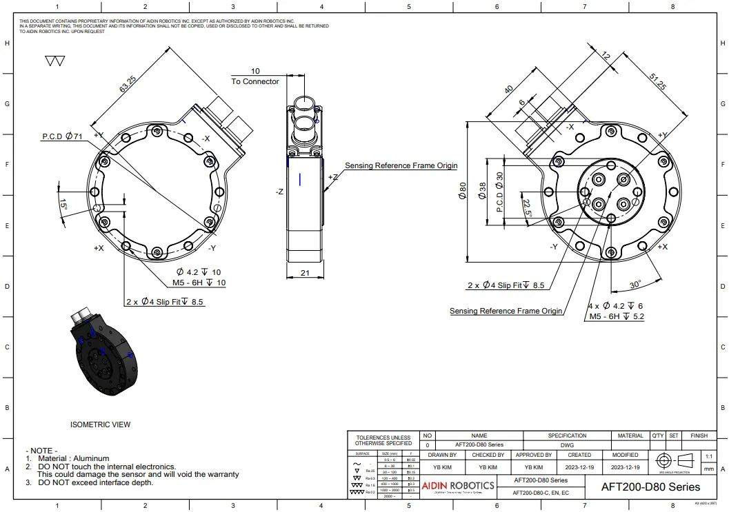 1.1 Smart 6-axis Force Torque Sensor, AFT200-D80