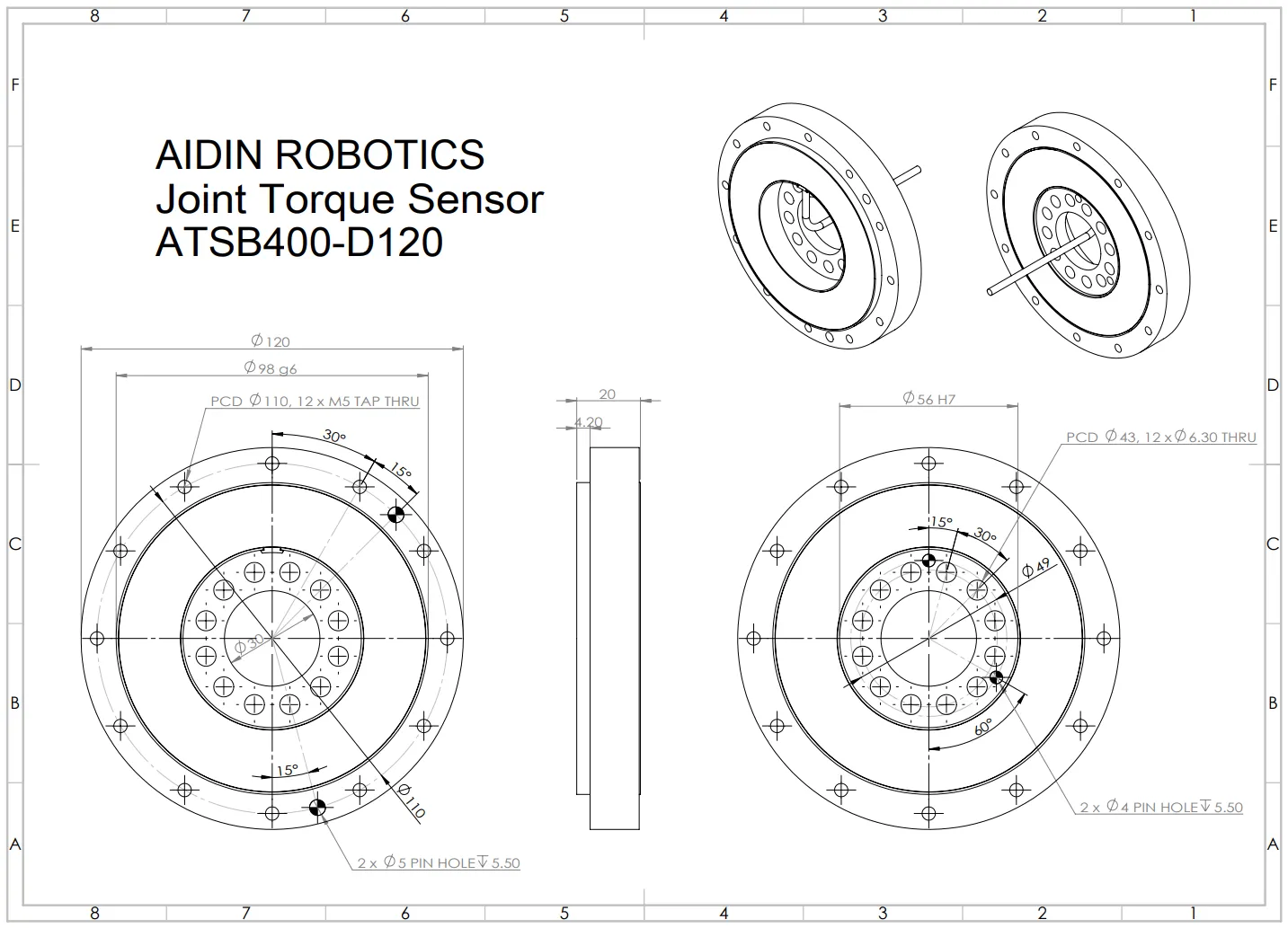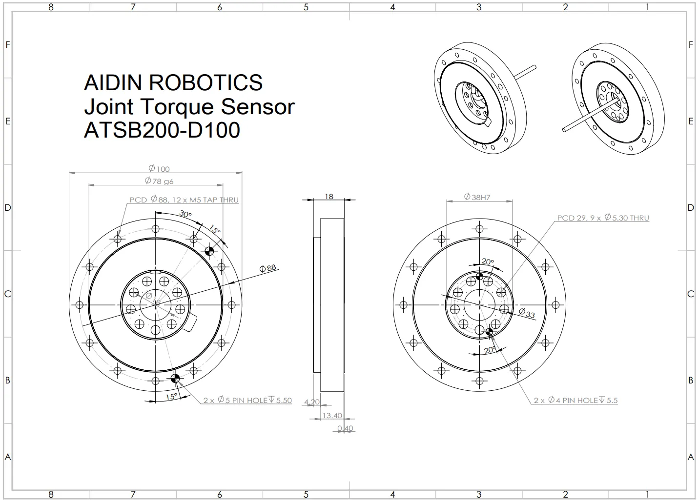 Example of torque sensor connection (the thickness of the part connected to the top is recommended to be at least 10t)