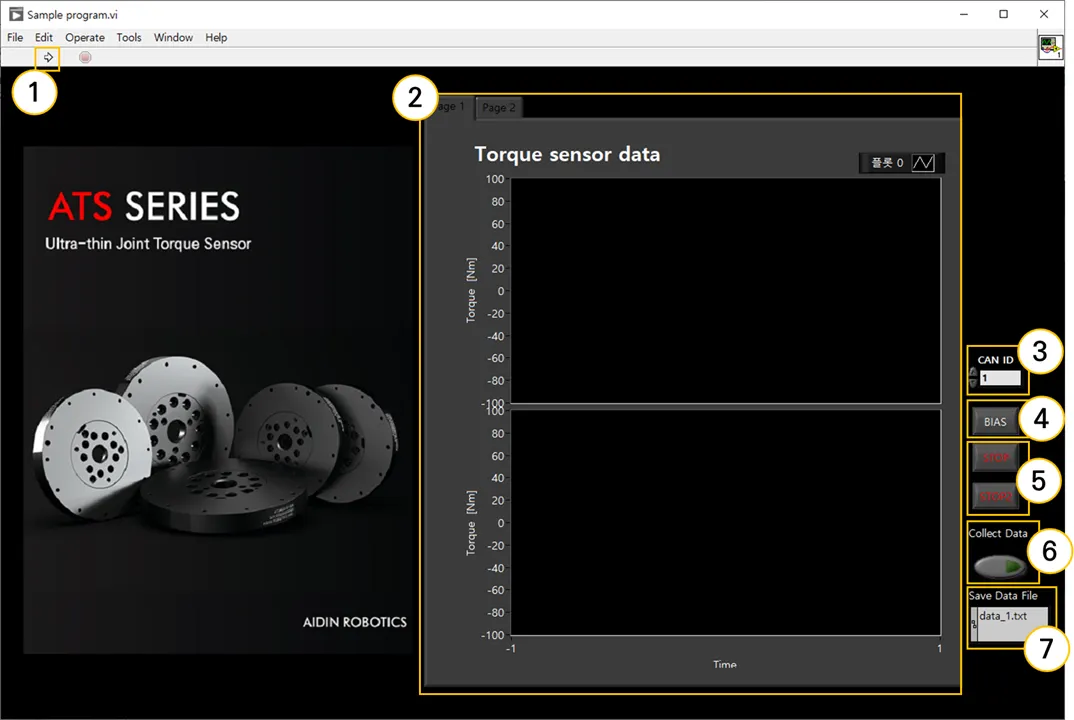 ① Program run Run the sample program. It runs automatically the first time you run it, and after STOP, you can run it by pressing the run button.